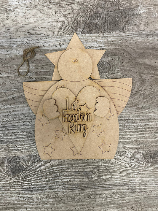 Large Chunky Standing Patriotic Angel 9 inches tall, wood cutouts, unpainted ready for you to finish