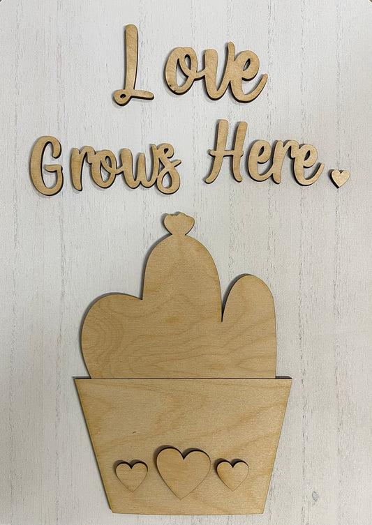 Love Grows Here unfinished cutouts, ready to paint, Hug Me