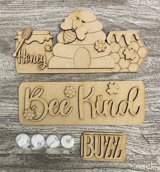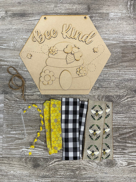 Bee Kind sign kit, unpainted wooden cutouts - Bee kit ready for you to paint, includes the circle