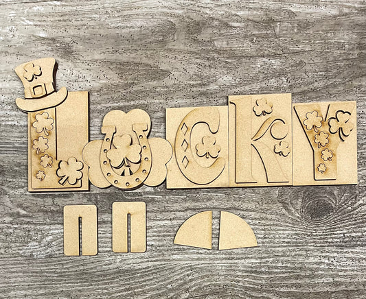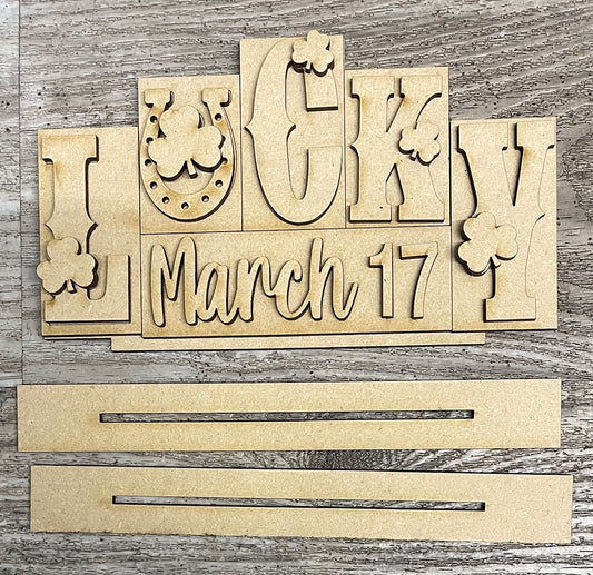 Lucky - St. Patricks Day word kit - wood pieces, unpainted wood cutouts, ready for you to paint, scrapbook paper is not included