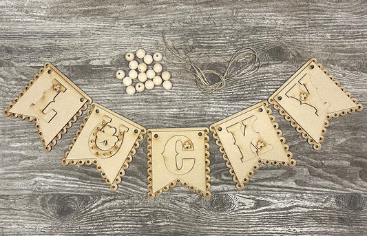 St. Patricks Day Garland - wood pieces, unpainted wood cutouts, ready for you to paint, scrapbook paper is not included