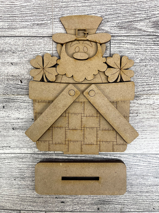 St. Patricks Leprechaun 2026 Basket Insert Add-On - unpainted wood cutouts, ready for you to paint