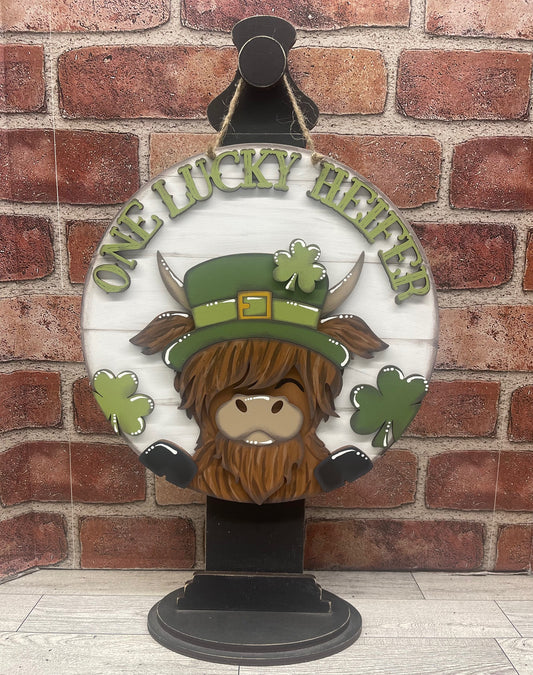 One Lucky Heifer - St. Patrick's Day Highland Cow Door Sign cutouts unpainted ready for you to finish