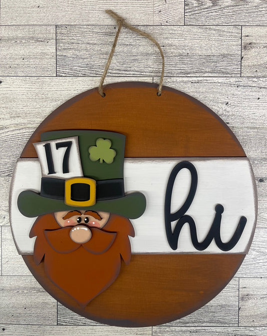 Round St. Patrick's Day - Hi Leprechaun Door Sign cutouts unpainted ready for you to finish