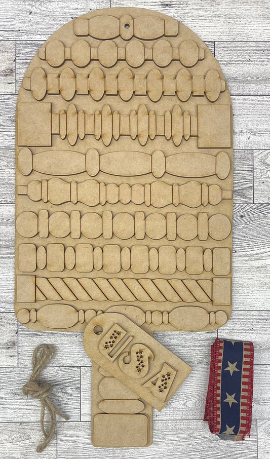 Spindle Patriotic Popsicle Cutouts, unpainted wooden cutouts - ready for you to paint