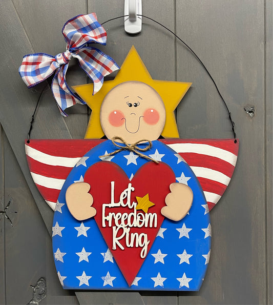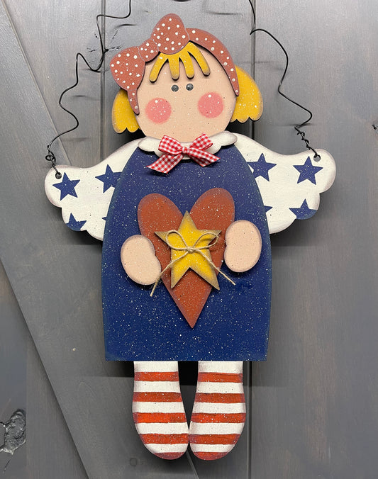 Patriotic Angel Door hanger, wood cutouts, unpainted ready for you to finish