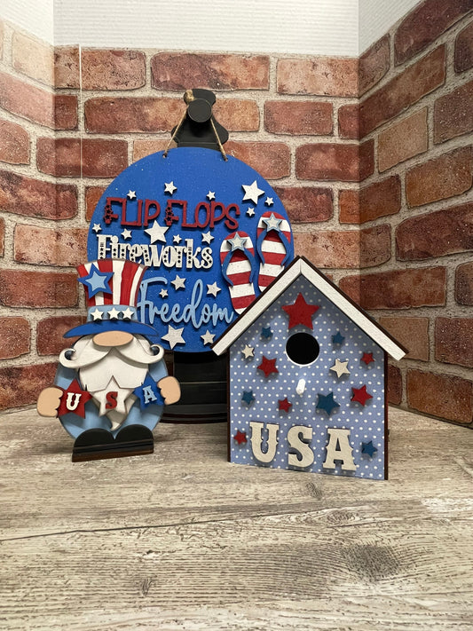 Patriotic Birdhouse add ons unpainted wooden cutout - ready for you to paint, birdhouse is not included