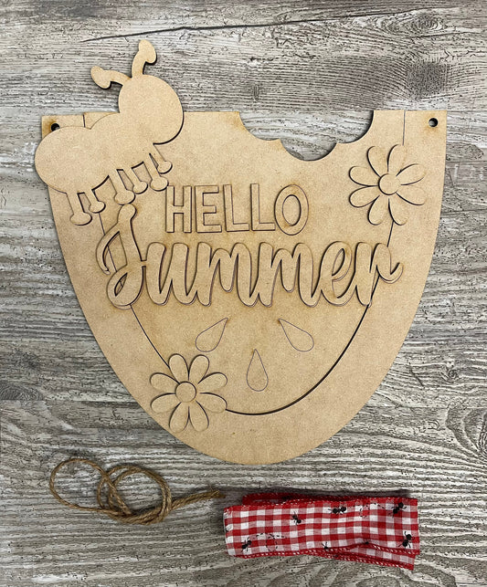 Hello Summer Watermelon sign kit, unpainted wooden cutouts - ready for you to paint, includes the circle