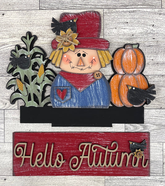 Hello Autumn Scarecrow - Insert for Changeable Window Box unpainted wood cutouts, ready for you to paint