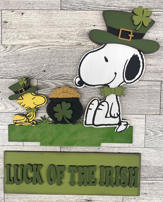 Peanuts - Snoopy & Woodstock St. Patricks - Insert for Changeable Window Box unpainted wood cutouts, ready for you to paint