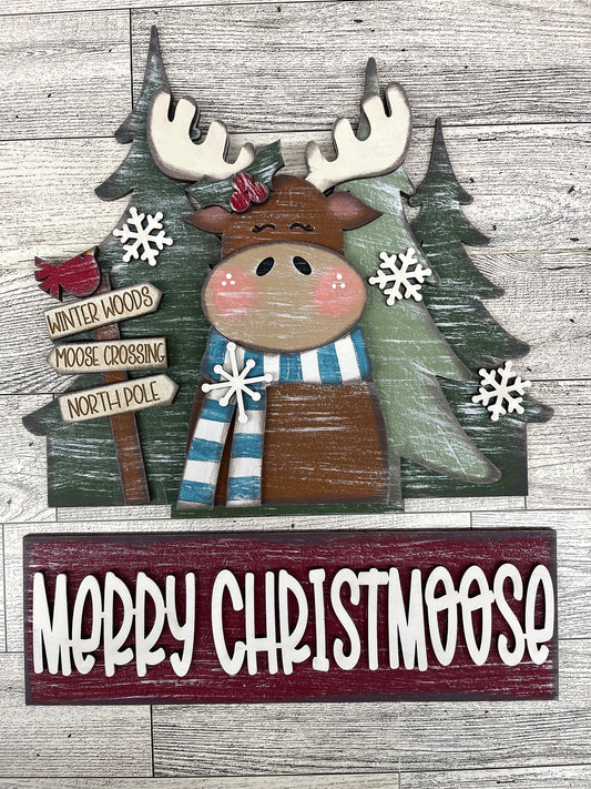 Merry Christmoose - Insert for Changeable Window Box unpainted wood cutouts, ready for you to paint
