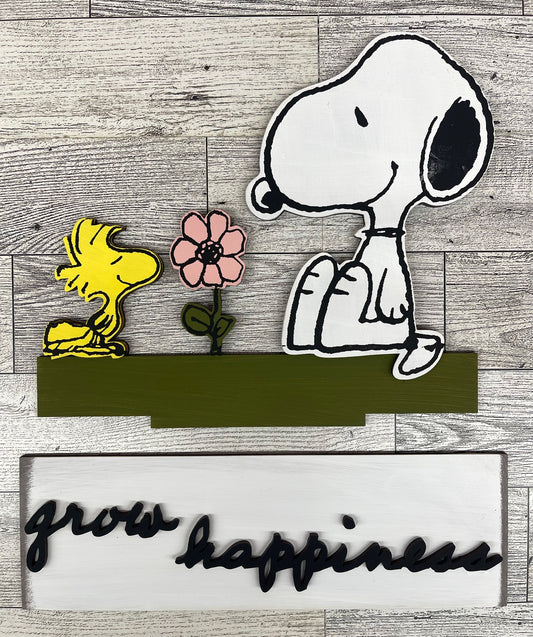 Grow Happiness - Snoopy & Woodstock Insert for Changeable Window Box unpainted wood cutouts, ready for you to paint