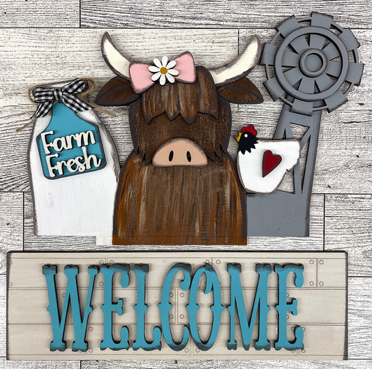 Highland Cow Welcome - Insert for Changeable Window Box unpainted wood cutouts, ready for you to paint