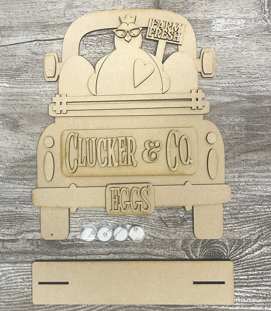 Chicken Truck with the removable pieces unpainted wood cutouts, ready for you to paint, includes truck
