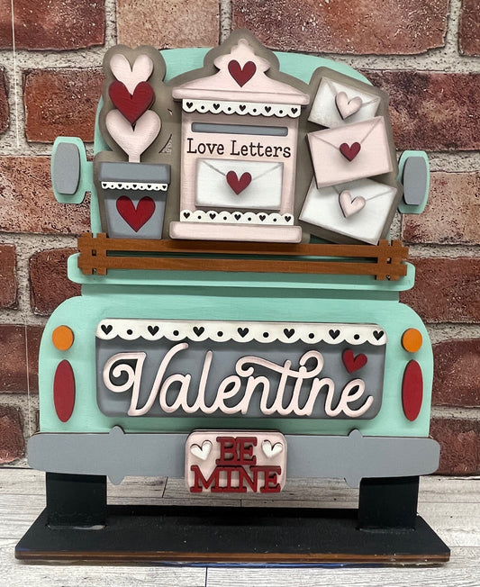 Be Mine Valentine Truck insert only, unpainted wood cutouts, ready for you to paint, does not include truck or fence