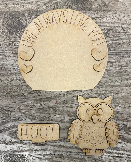 Valentines Owl Always Love You Water globe cutouts unpainted ready for you to finish