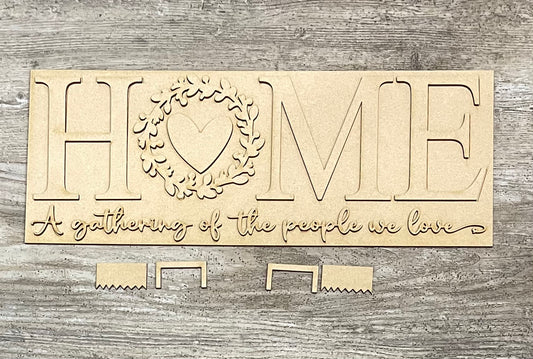 Home a gathering of the people we love sign cutouts - unpainted wooden cutouts, ready for you to paint