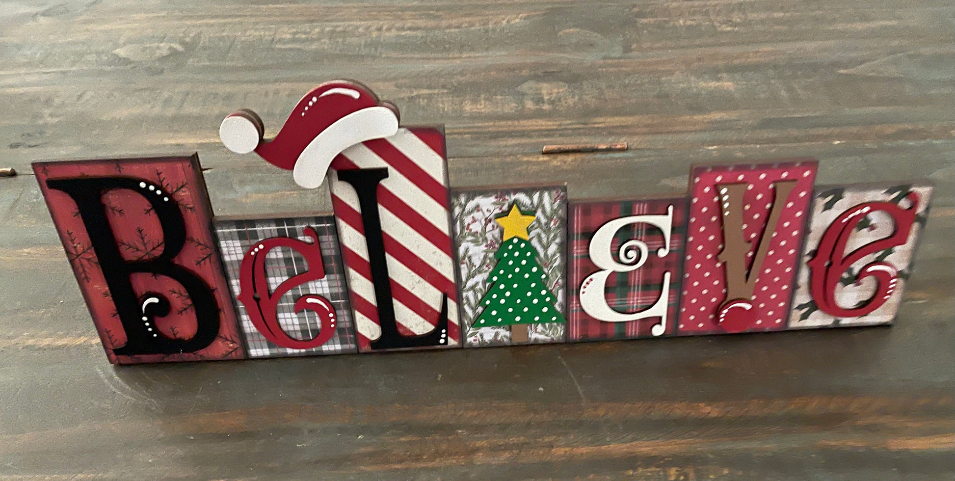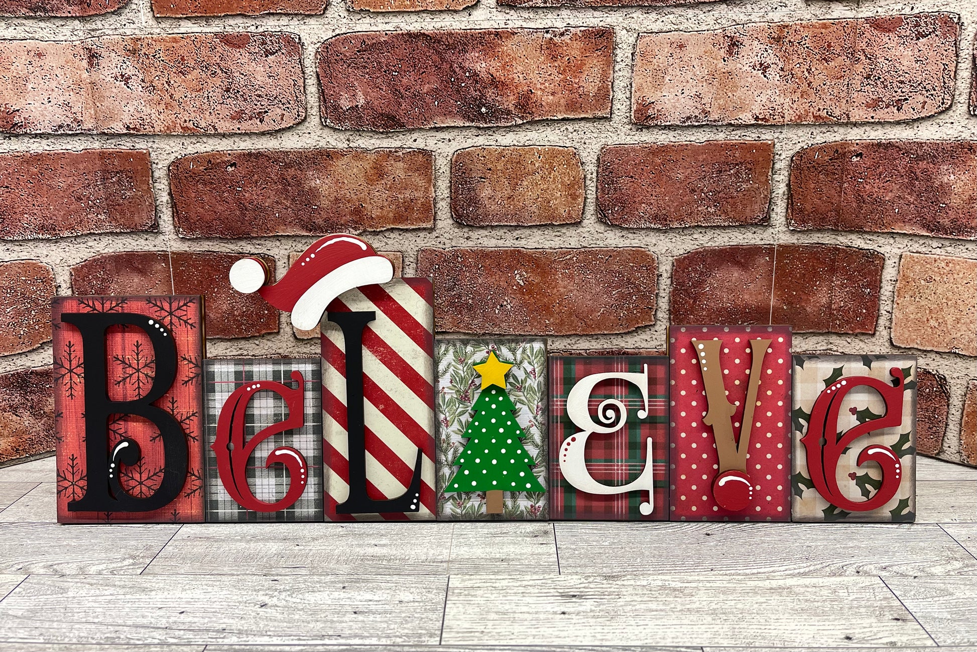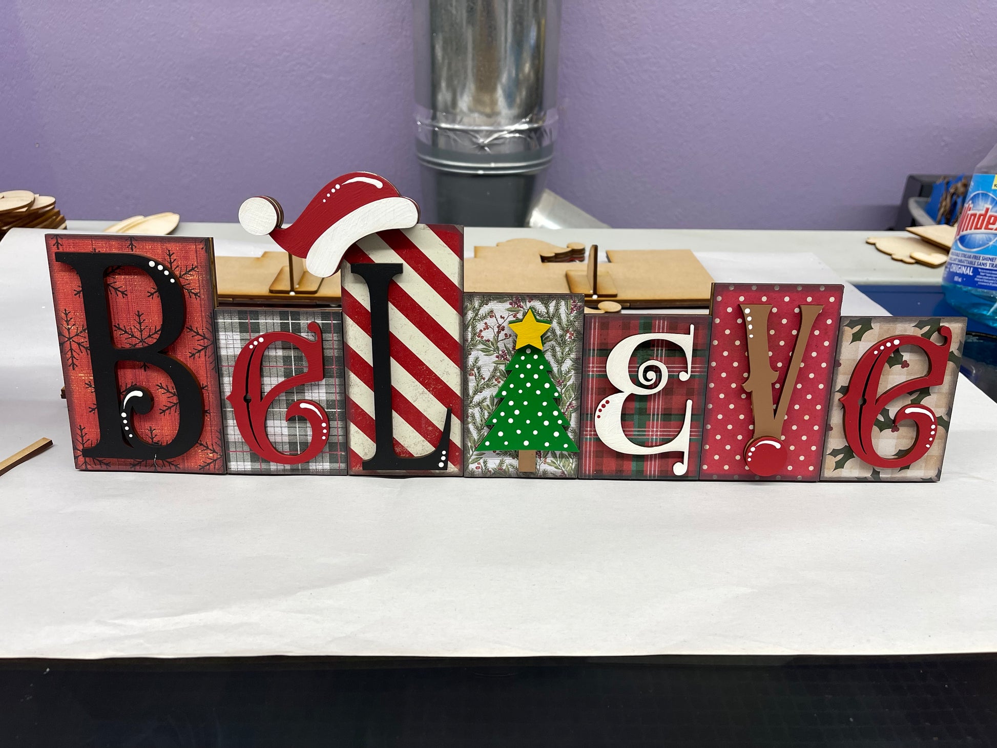 Believe word kit - wood pieces, unpainted wood cutouts, ready for you to paint. The scrapbook paper is not included.