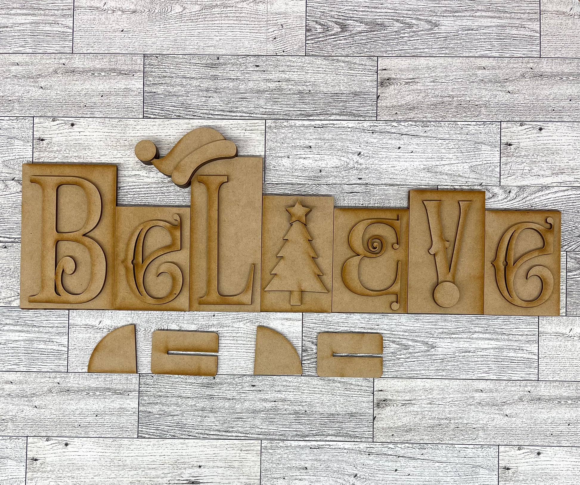 Believe word kit - wood pieces, unpainted wood cutouts, ready for you to paint, scrapbook paper is not included