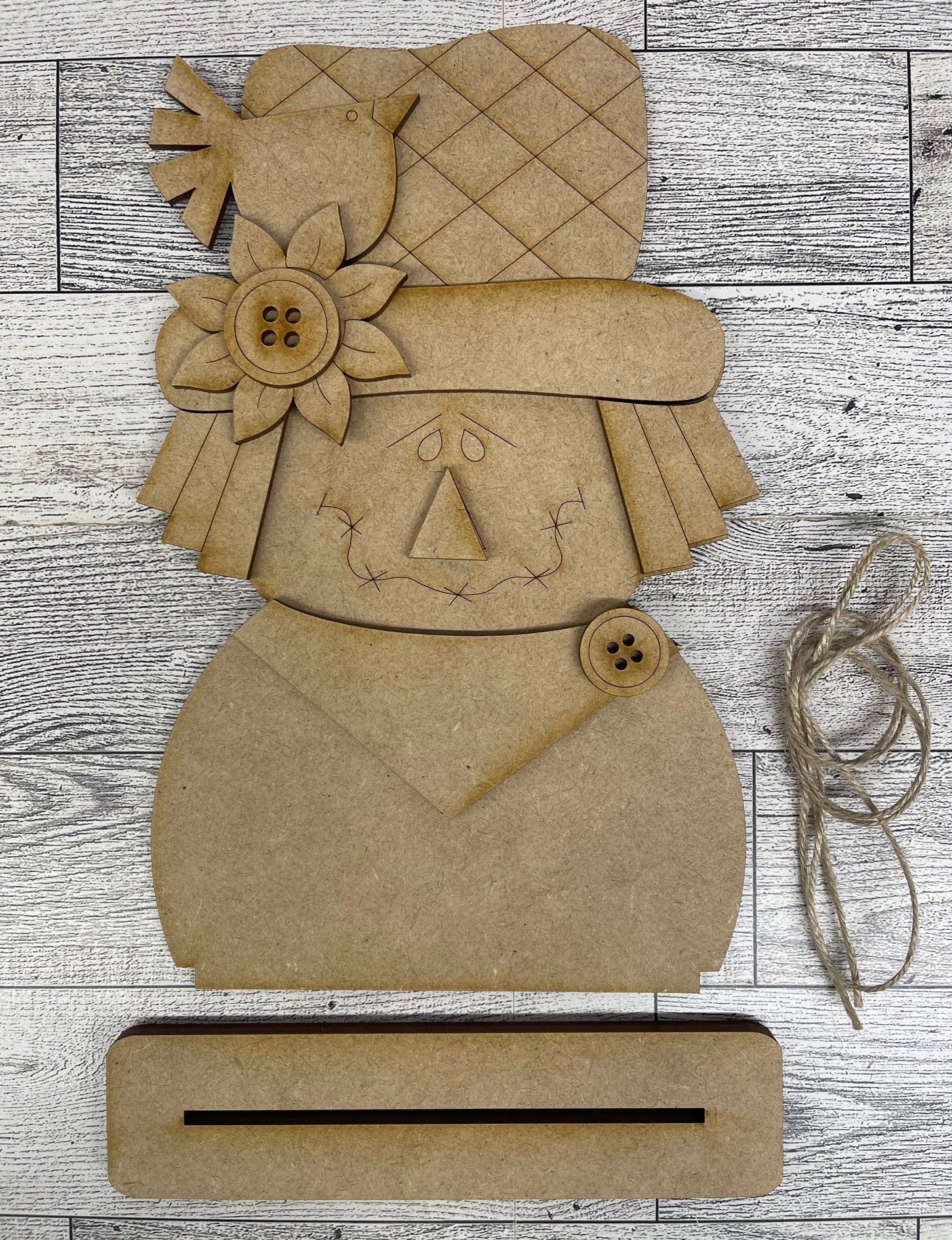 2025 August Craft Kit - Hello Door Sign Insert and House Ladder Blocks Only unpainted cutouts and Bonus Scarecrow Stander Kit - doesn't include the door sign backer and house leaning ladder