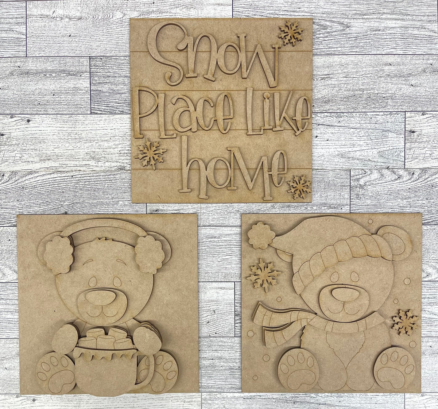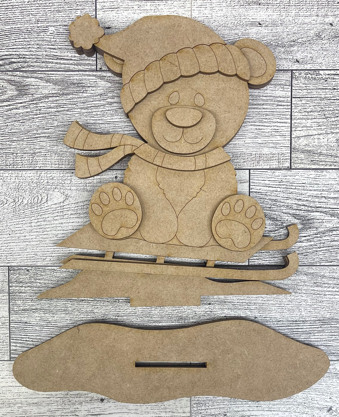 Both December 2025 Insert and blocks only - December Craft Kit - Hello Door Sign Insert and Polar Bear stander Kit- doesn't include the door sign House Ladder Blocks Only unpainted cutouts, Sign backer and house leaning ladder