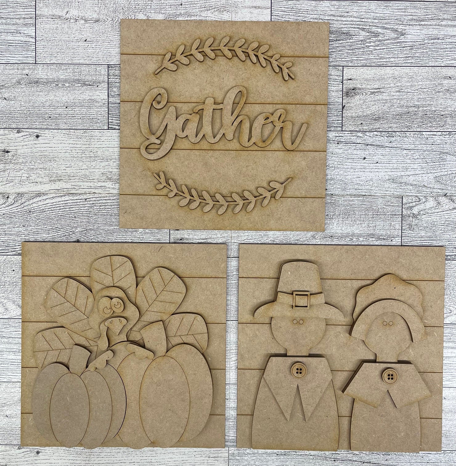 Both October 2025 Insert and blocks only - October Craft Kit - Hello Door Sign Insert and Turkey Kit- doesn't include the door sign House Ladder Blocks Only unpainted cutouts, Sign backer and house leaning ladder