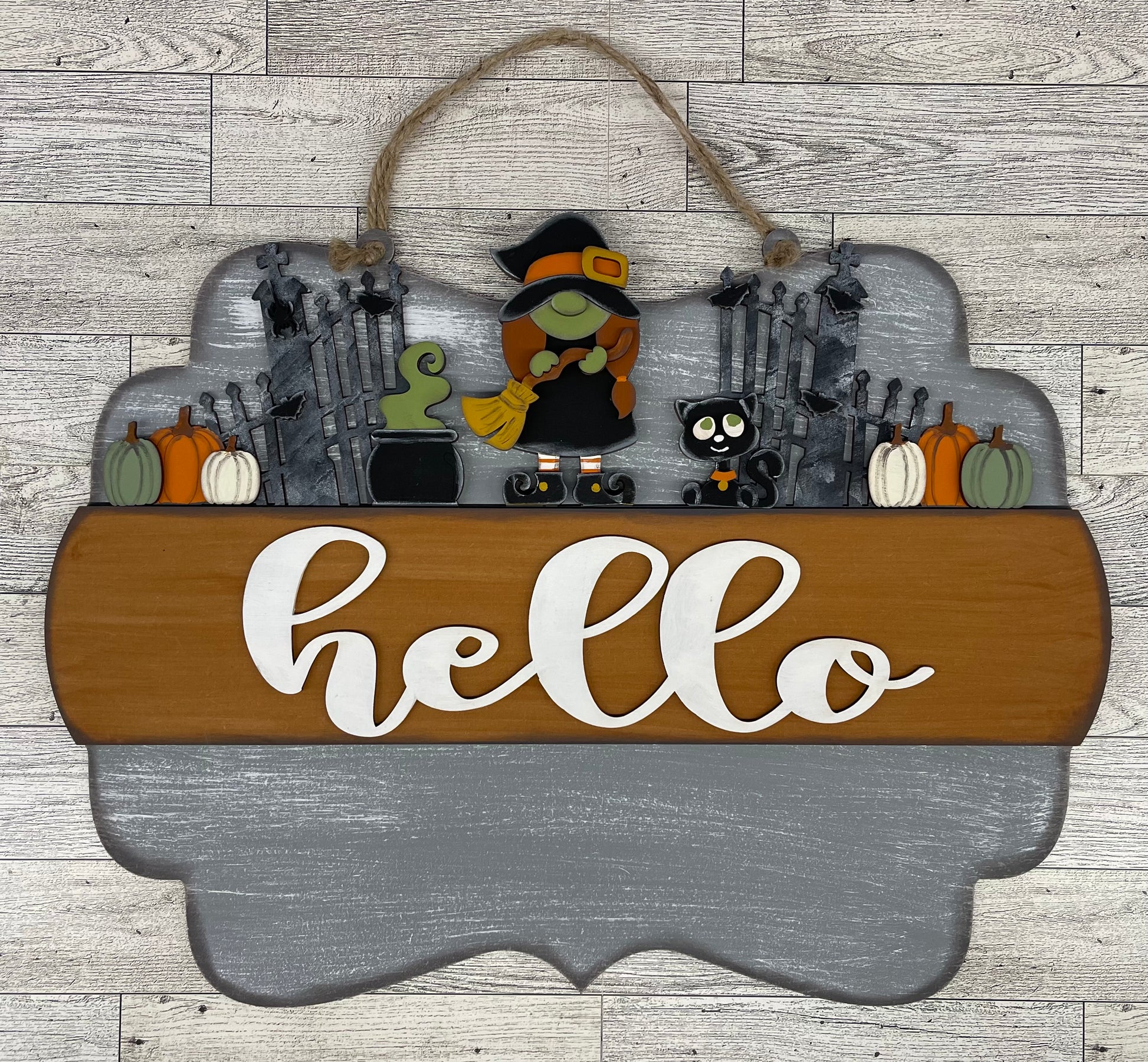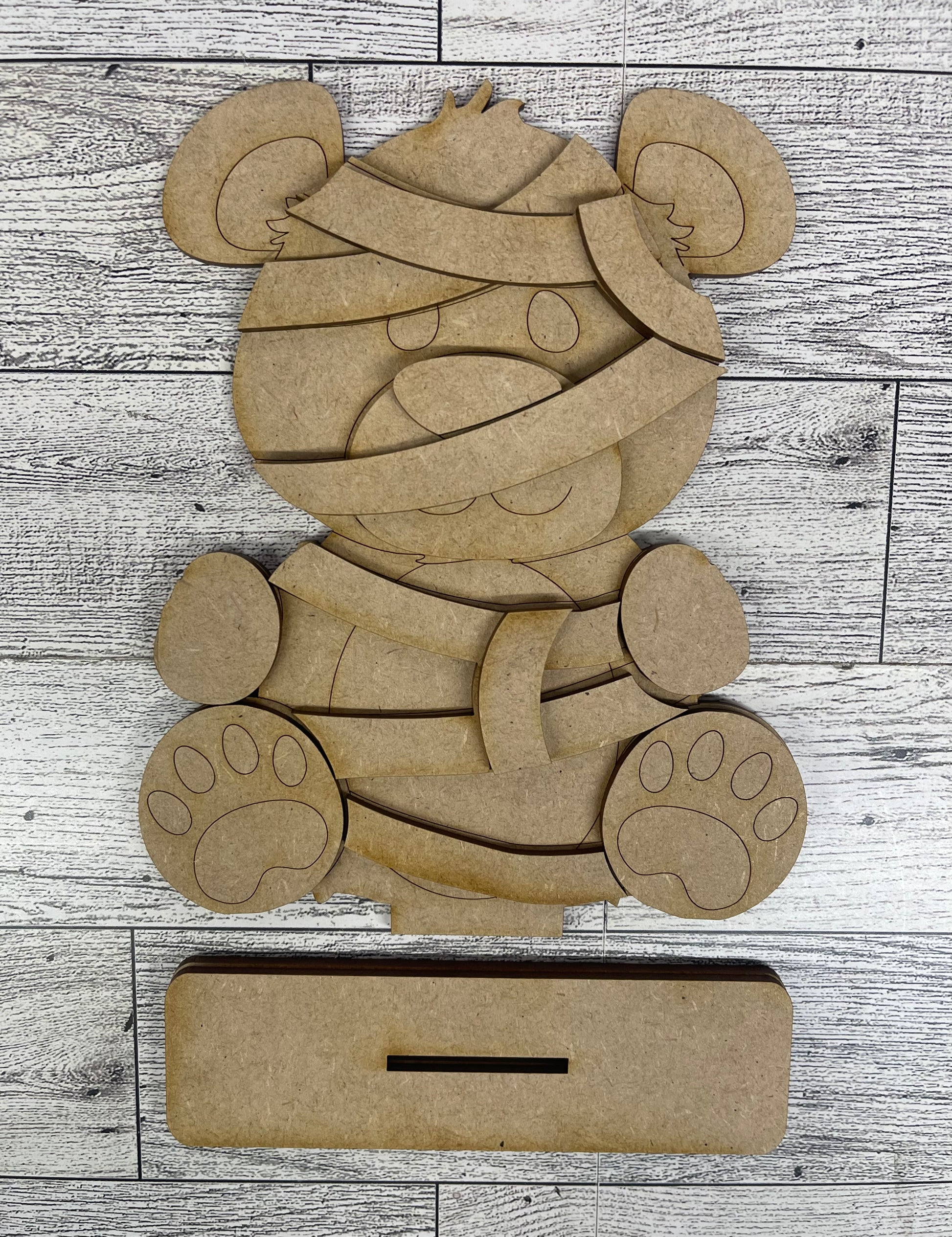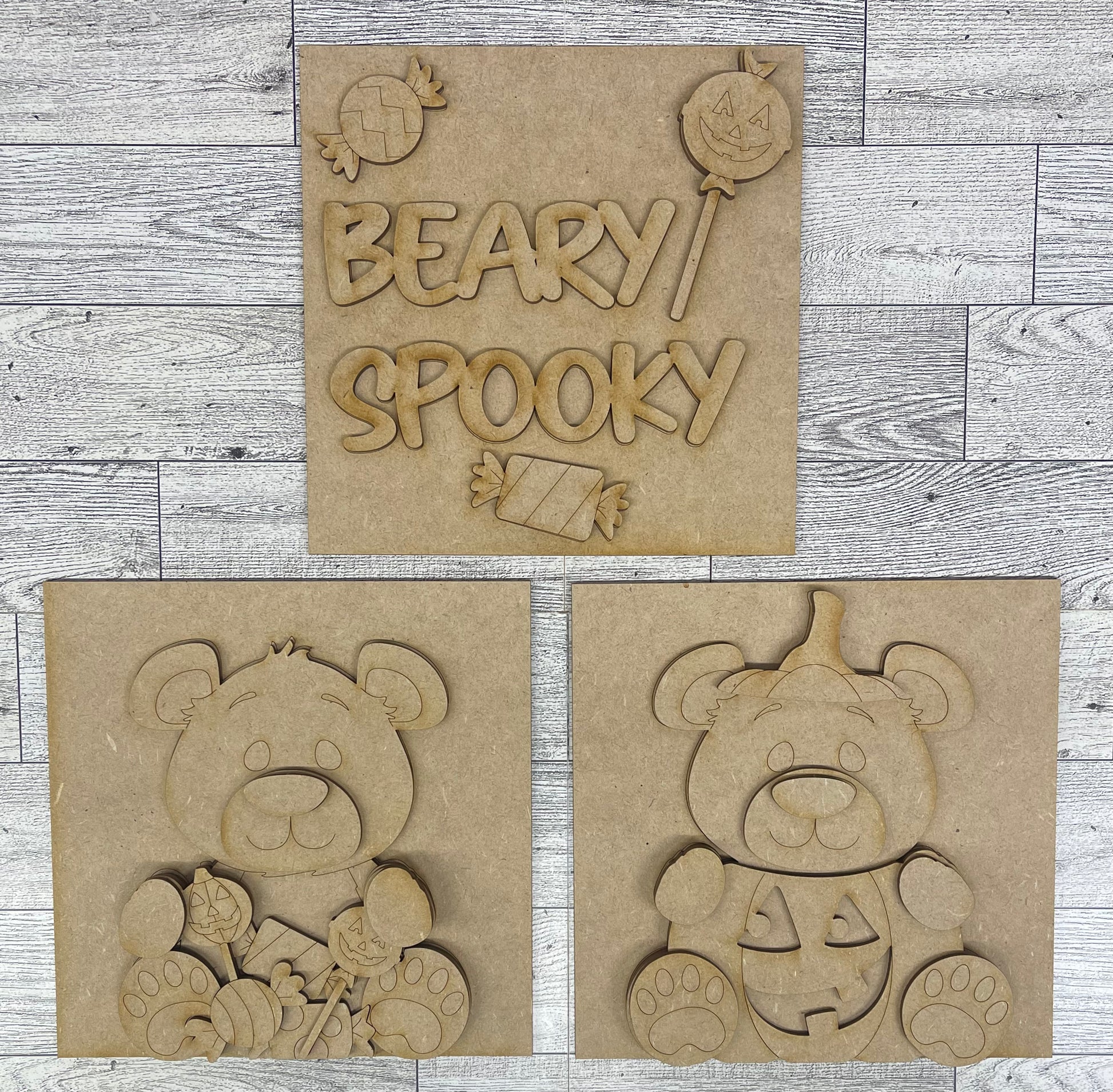 2025 September Craft Kit - Hello Door Sign Insert and House Ladder Blocks Only unpainted cutouts and Bonus Bear Mummy Stander Kit - doesn't include the door sign backer and house leaning ladder