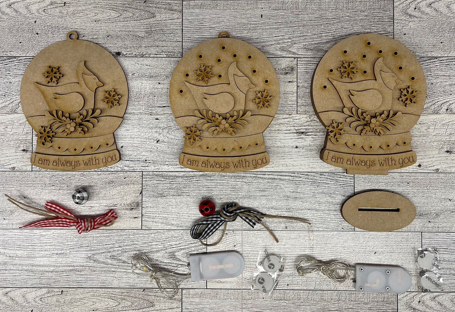 Cardinal lighted Christmas Globe Ornament or Stander - unpainted wood cutouts, ready for you to paint