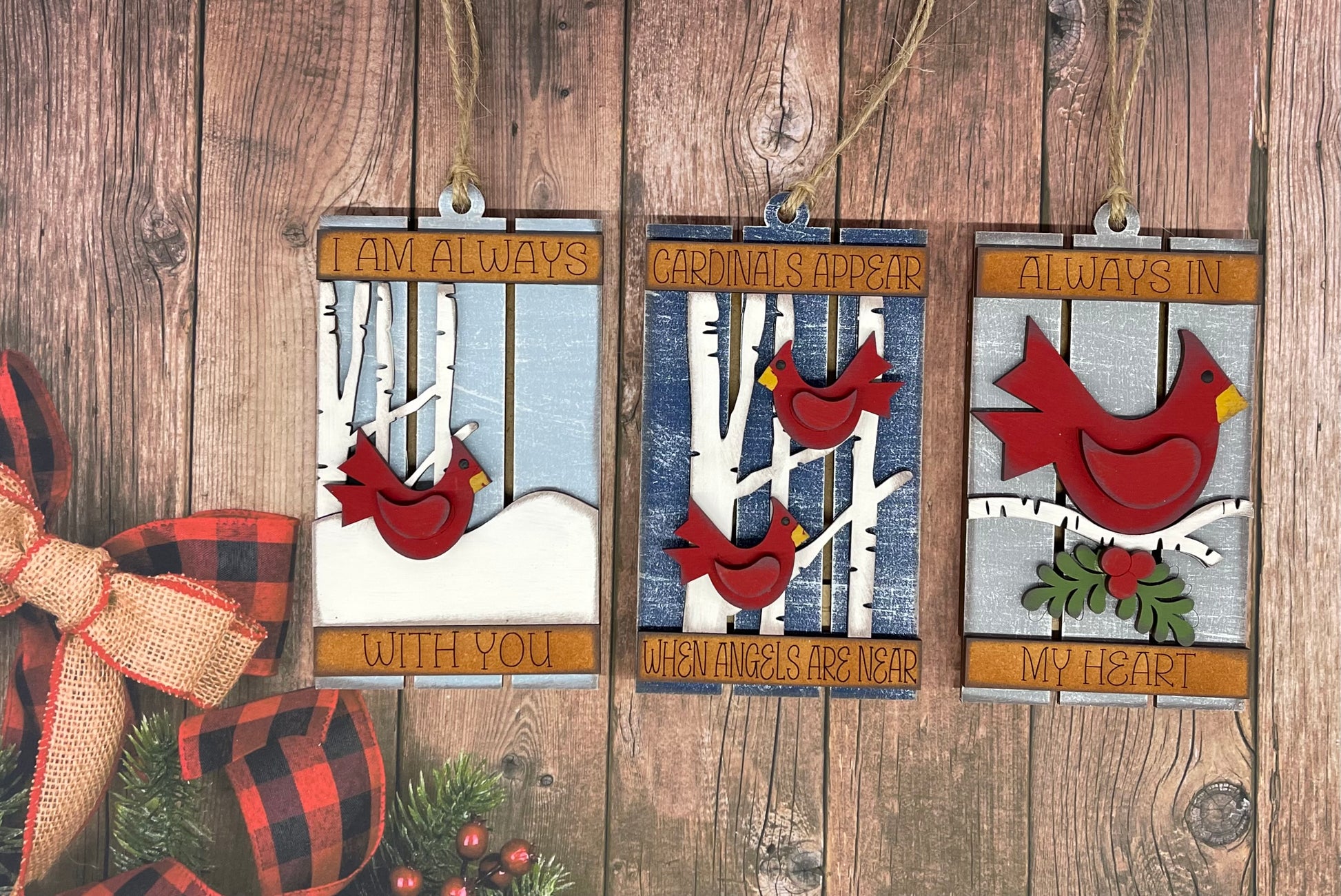 Cardinal Memorial Pallet Christmas Ornaments unpainted cutouts ready for you to finish painting