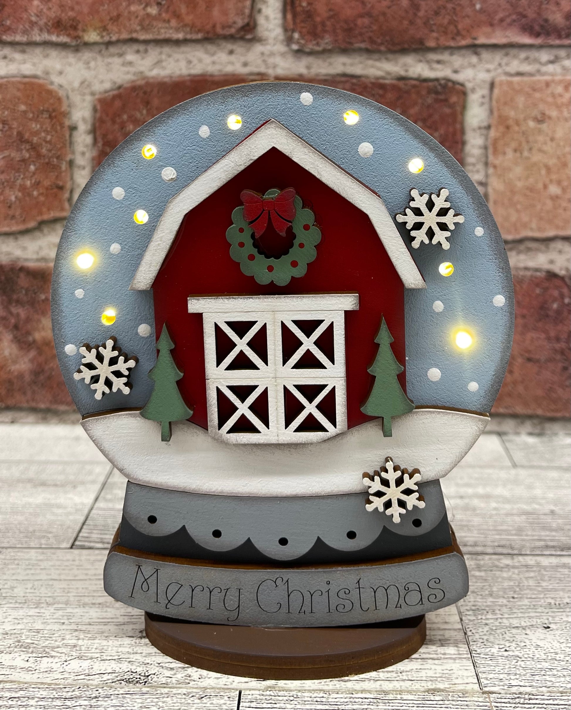 Christmas Barn - lighted Christmas Globe Ornament or Stander - unpainted wood cutouts, ready for you to paint