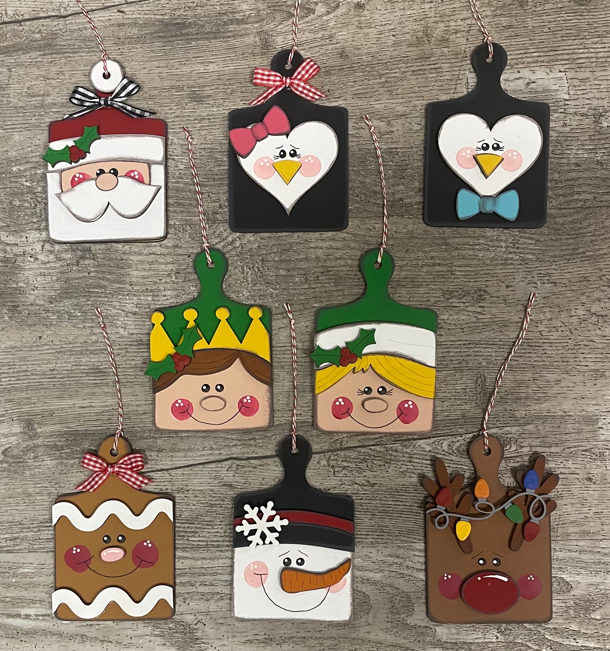 Christmas Mini Cutting Board wooden ornaments - set of 8 cutouts, unpainted ready for you to finish