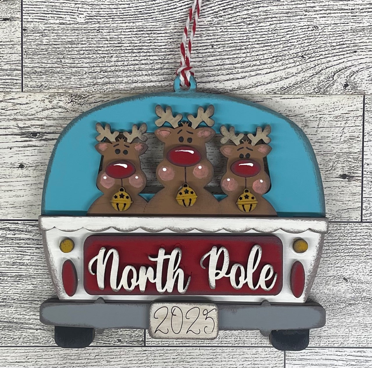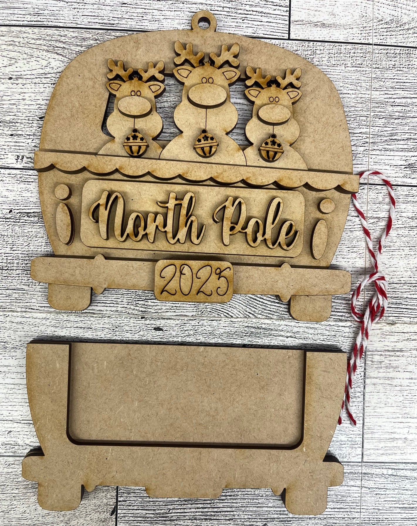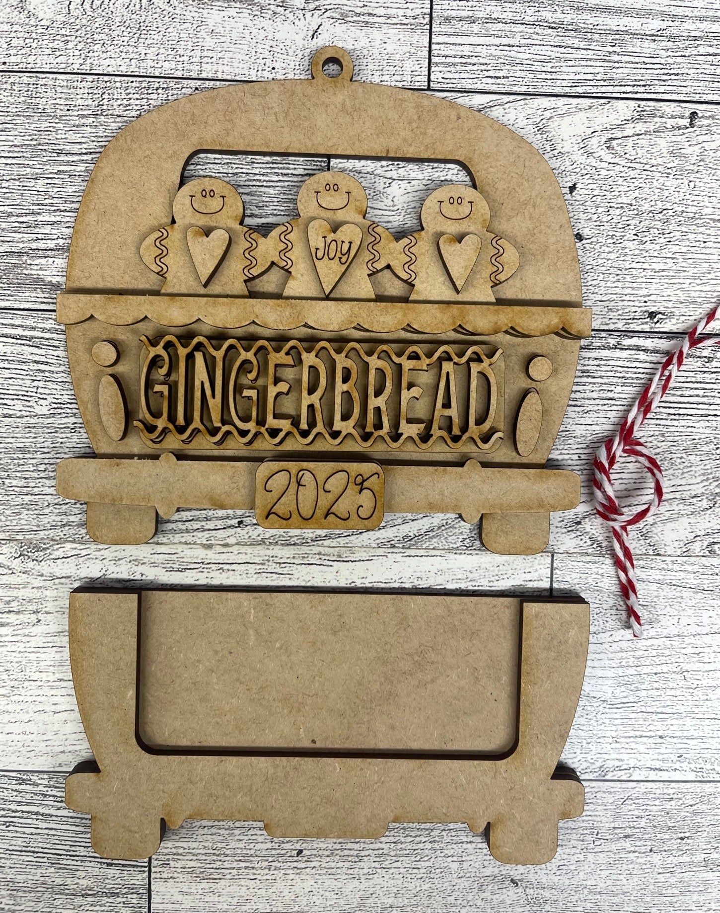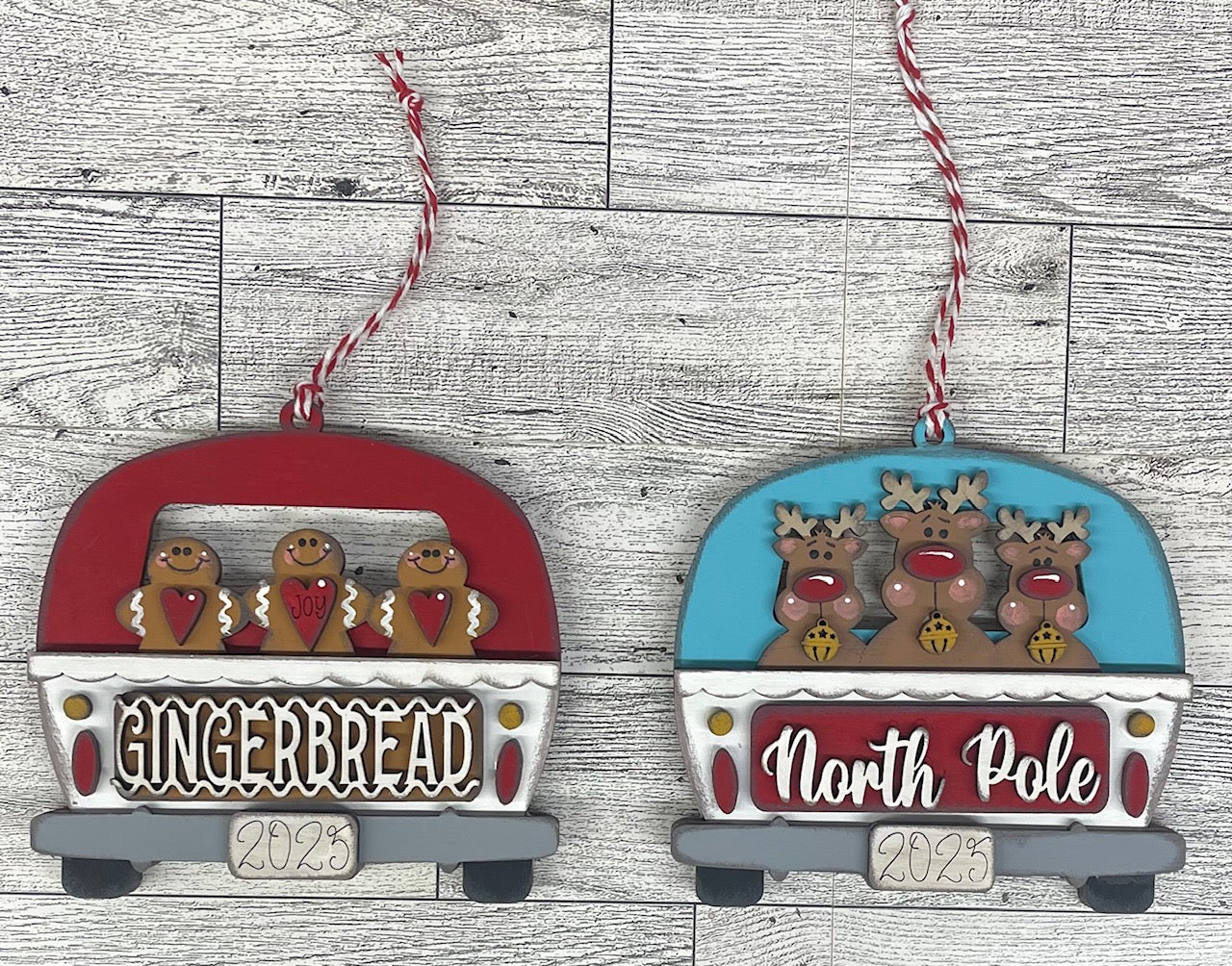 Christmas Trailer Ornament set of 2 cutouts - gift card holder - unpainted wooden cutouts, ready for you to paint