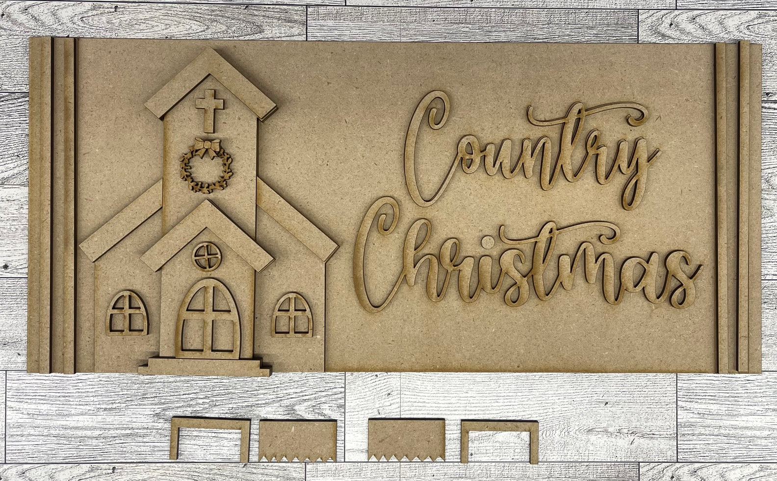 Country Christmas Tree Farm Church Mantle Sign unpainted wooden cutouts ready for you to paint