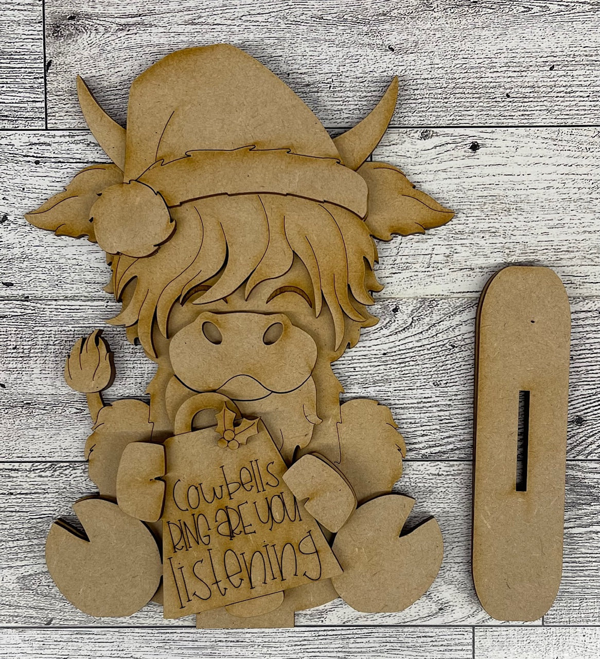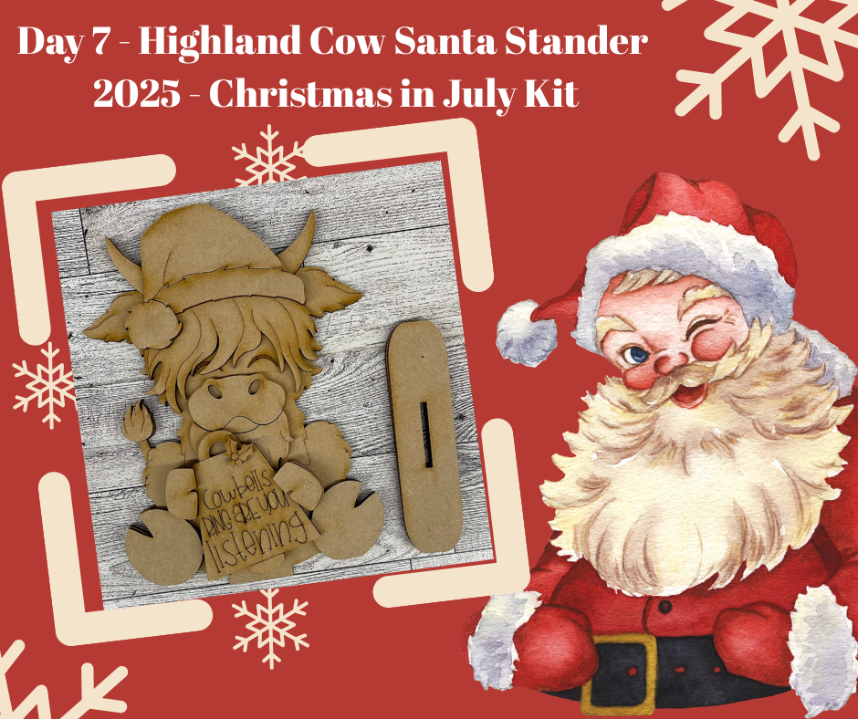 ay 7 - Christmas in July - Highland Cow Santa Stander - wood cutouts ready for you to finish painting