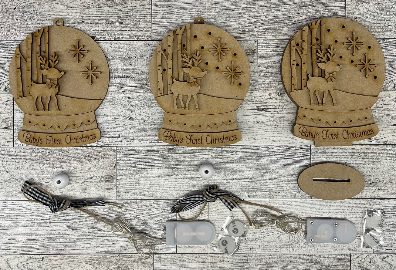 Deer - Baby's 1st Christmas - lighted Christmas Globe Ornament or Stander - unpainted wood cutouts, ready for you to paint - ribbon and beads will vary