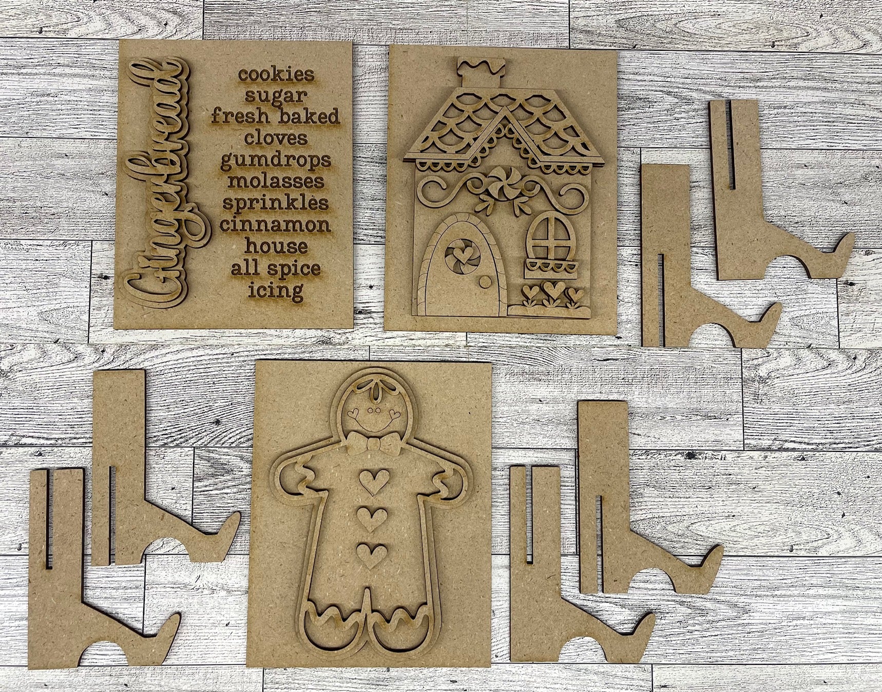 Gingerbread Christmas Sign Trio - unpainted cutouts
