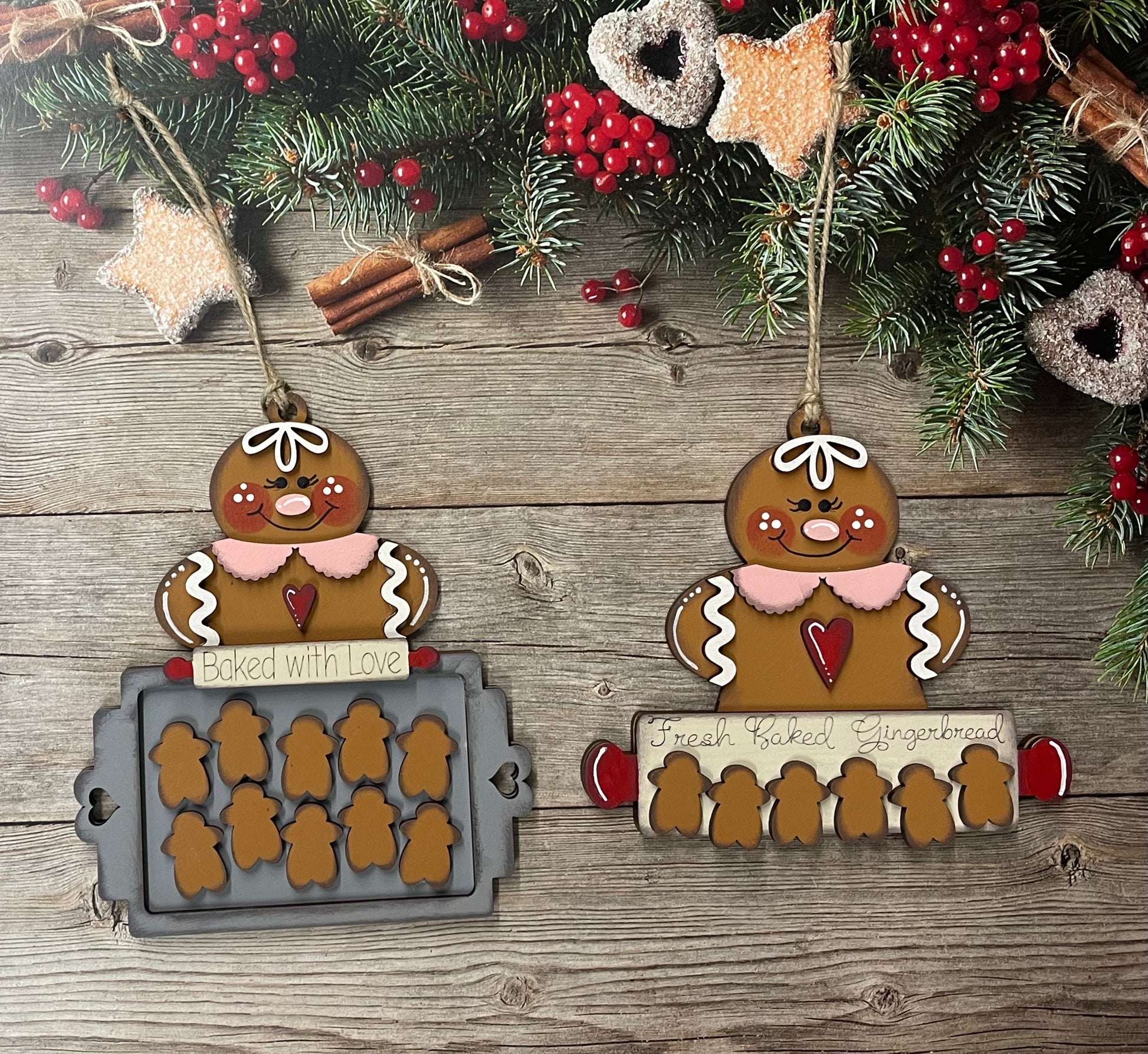 Gingerbread Cookie Sheet Ornaments - Set of 2 wood ornament cutouts, unpainted ready for you to finish