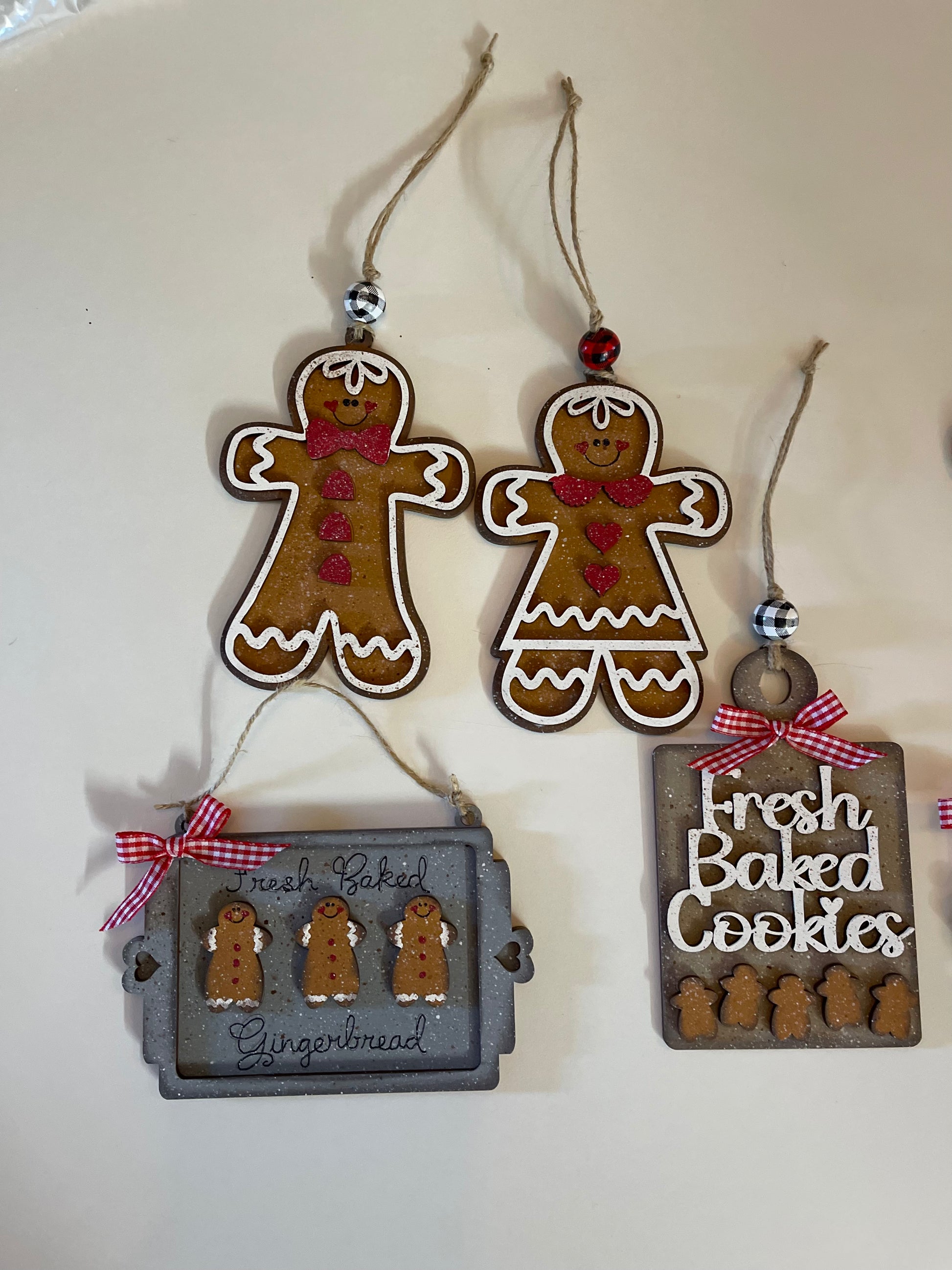 4 Gingerbread Cookie Sheet ornaments unpainted wooden cutouts - ready for you to paint, includes the circle