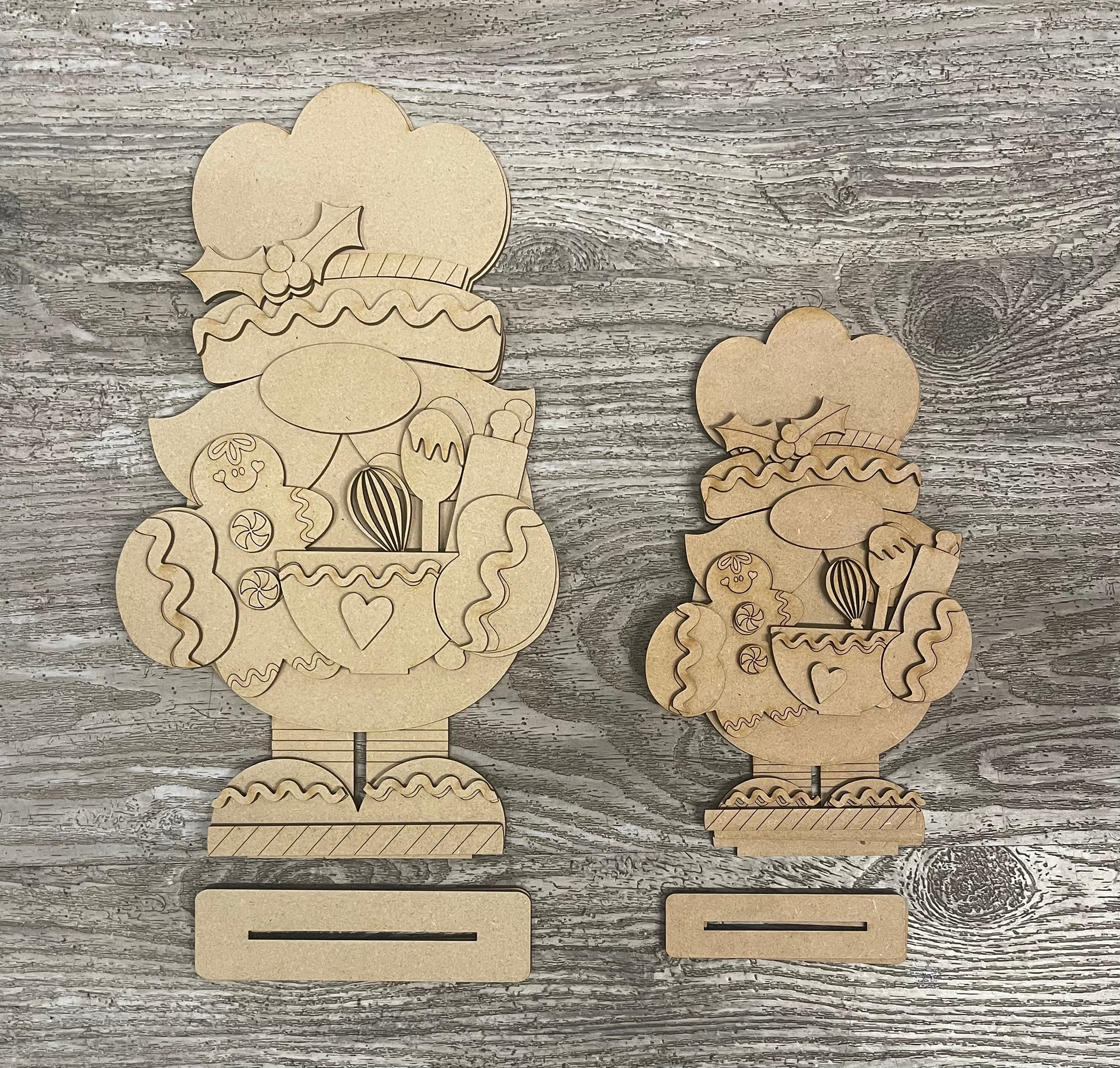 Gingerbread Gnome, 2 sizes, cutout, unpainted wooden cutout, ready for you to paint
