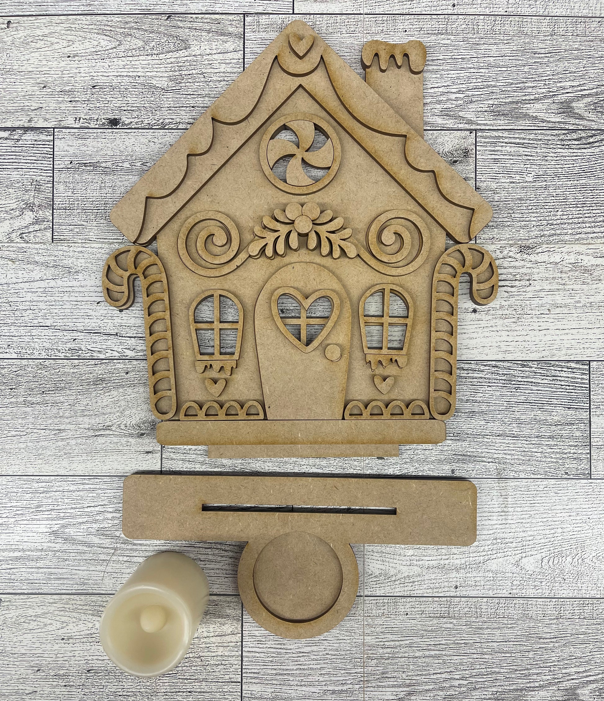 Gingerbread House Stander with Tealight - unpainted cutouts, ready for you to paint
