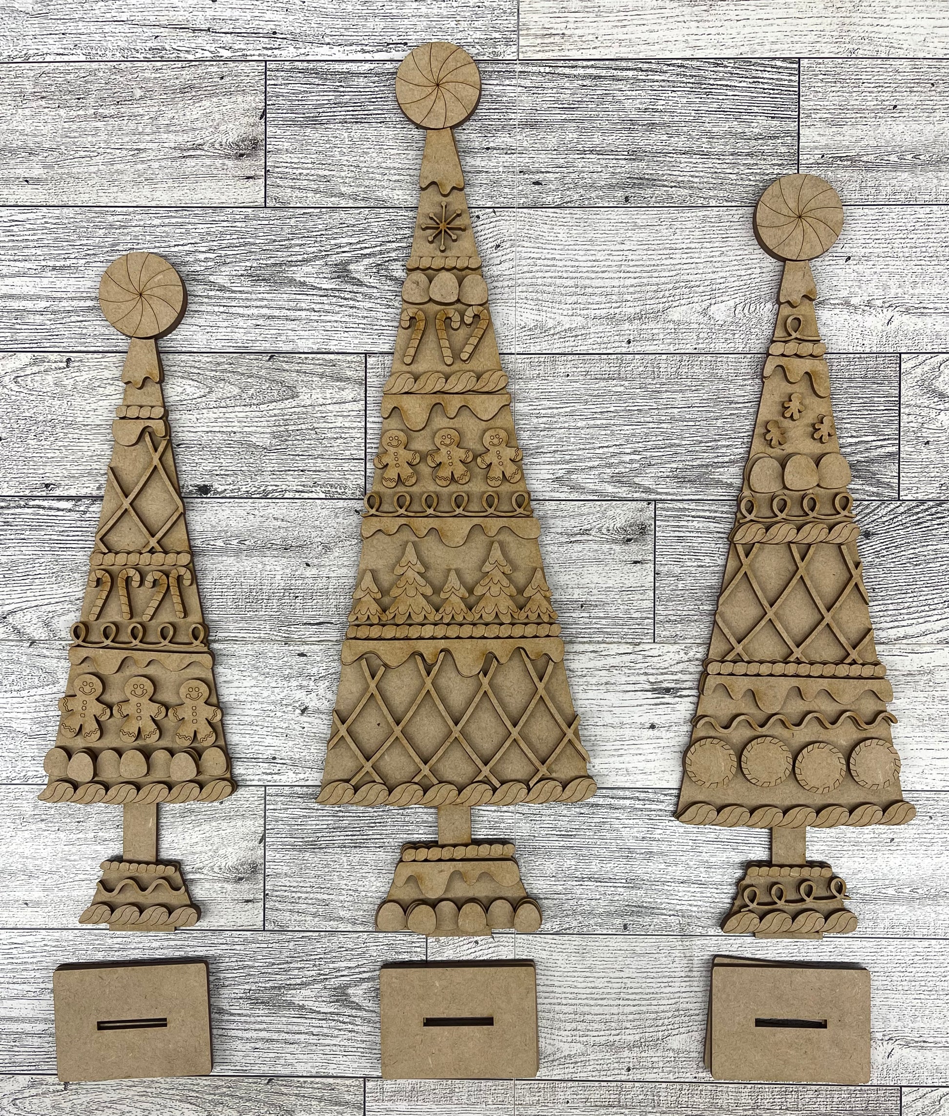 Gingerbread Tree Stander Trio - unpainted cutouts, ready for you to paint
