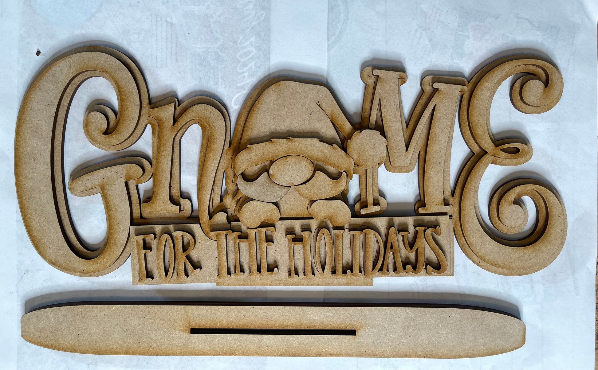 Gnome for the Holidays Word Stander unpainted wooden cutouts ready for you to paint