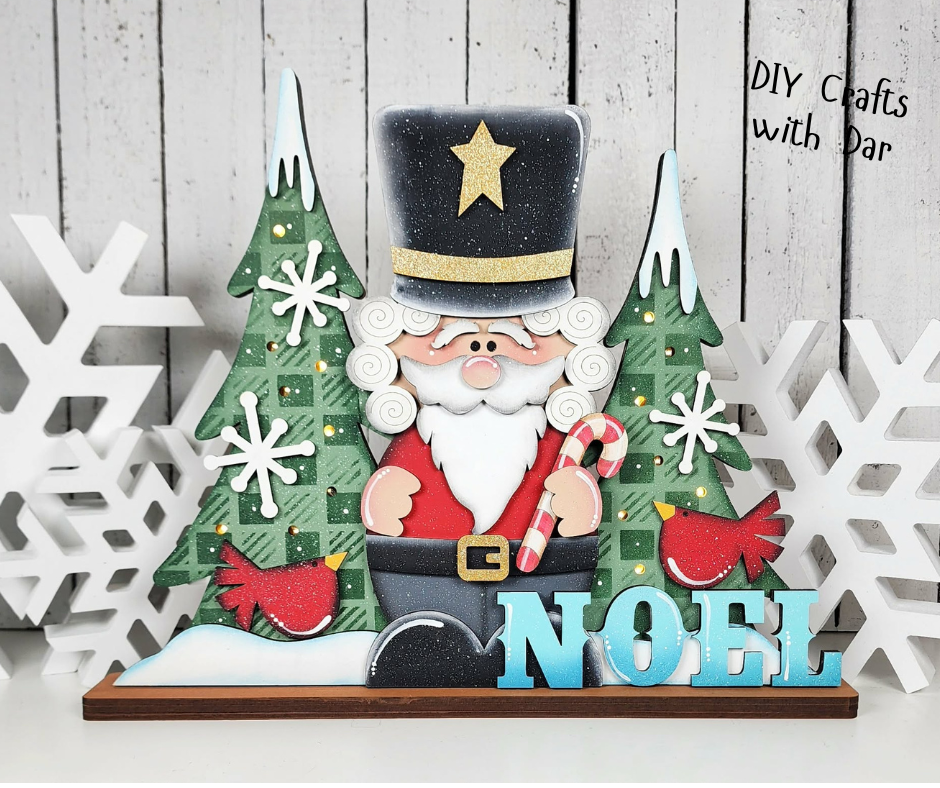 January - Add On - Lighted Nutcracker with Trees Stander - unpainted wood cutouts, ready for you to paint