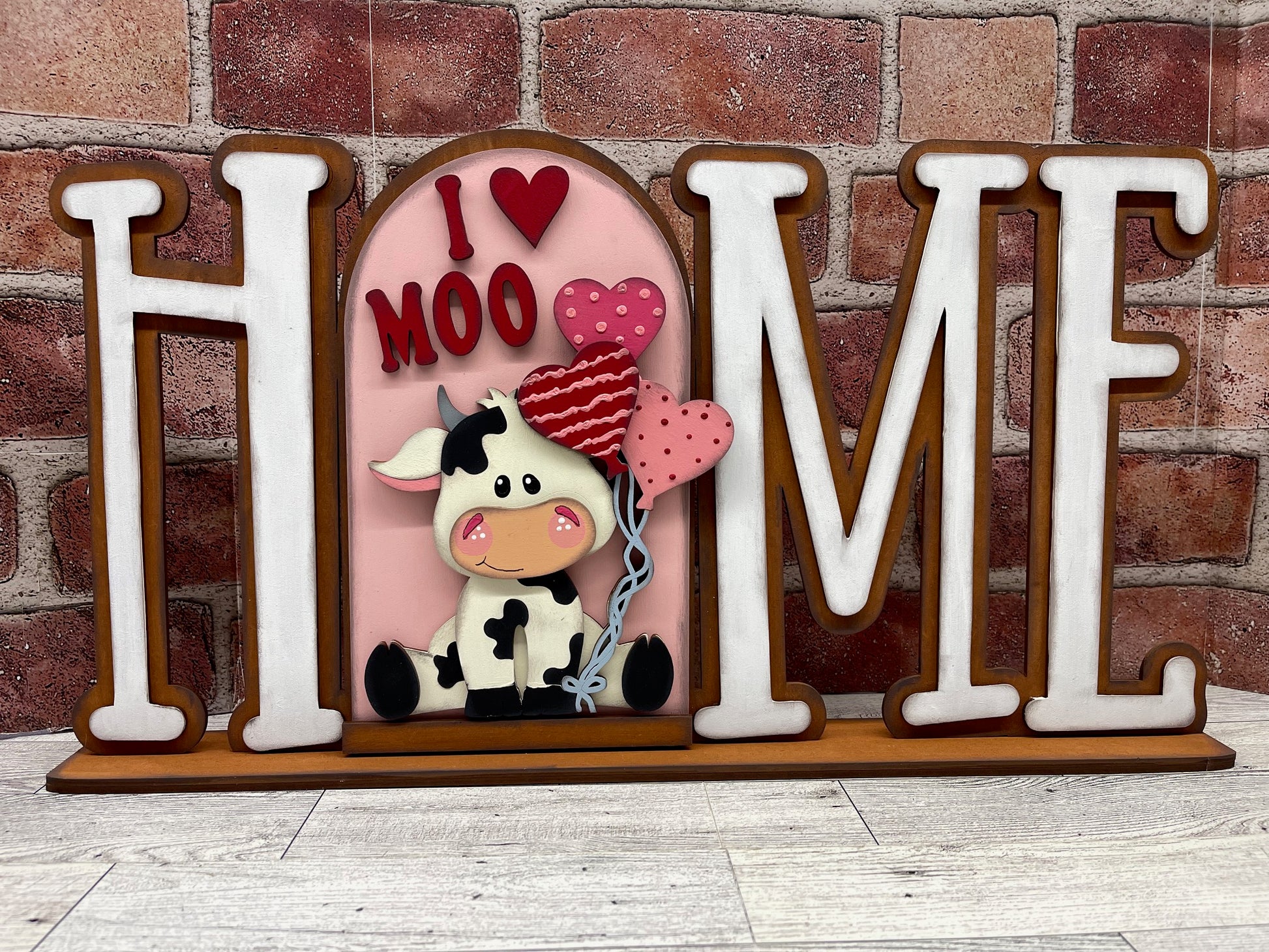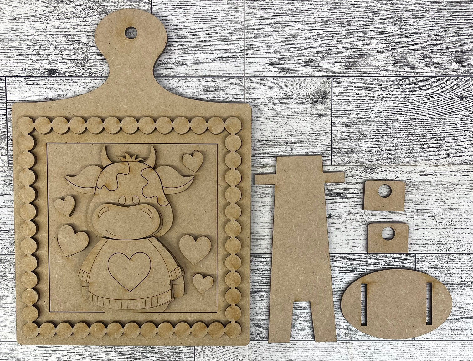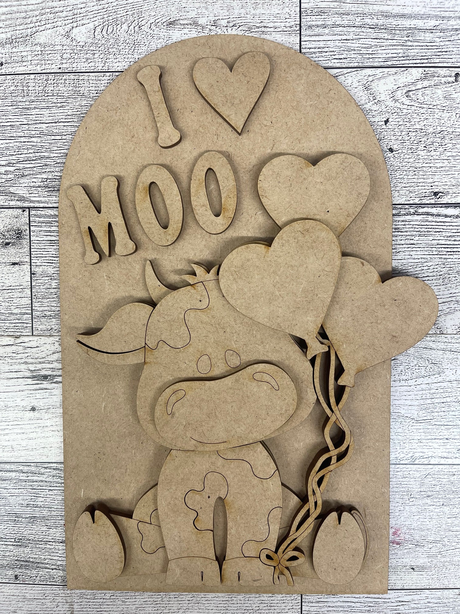 January Monthly Craft Kit - Valentine Dairy Cow themed - includes frame and plain arch or HOME arch frame - unpainted ready for you to finish