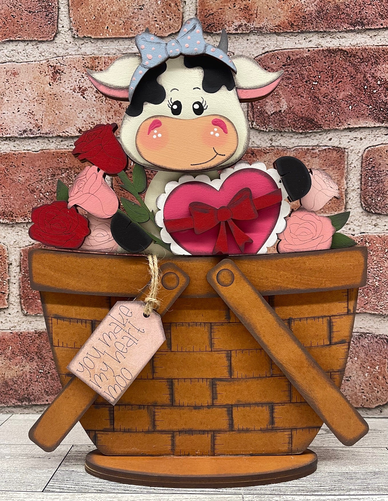 Valentine Dairy Cow Basket Insert Add-On - unfinished wood - ready for you to paint