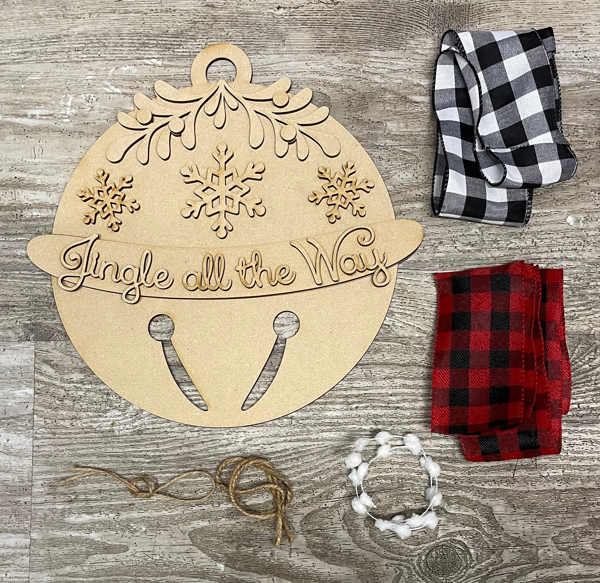 Jingle all the Way sign kit, unpainted wooden cutouts - ready for you to paint