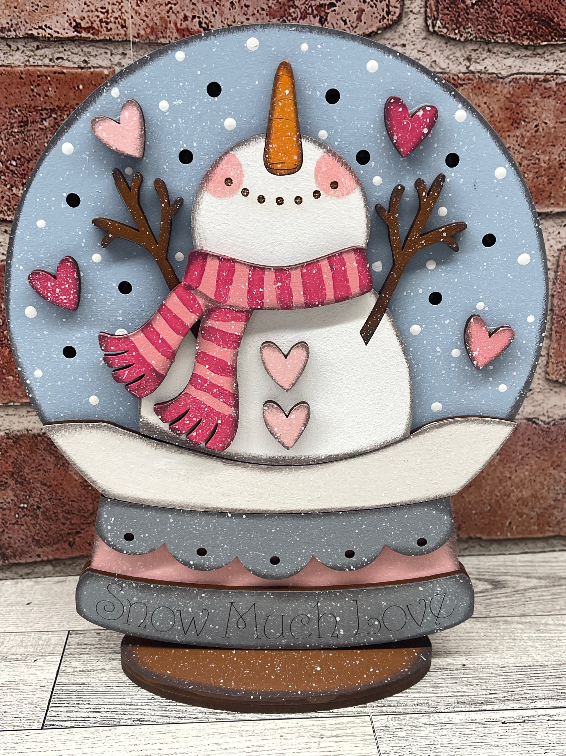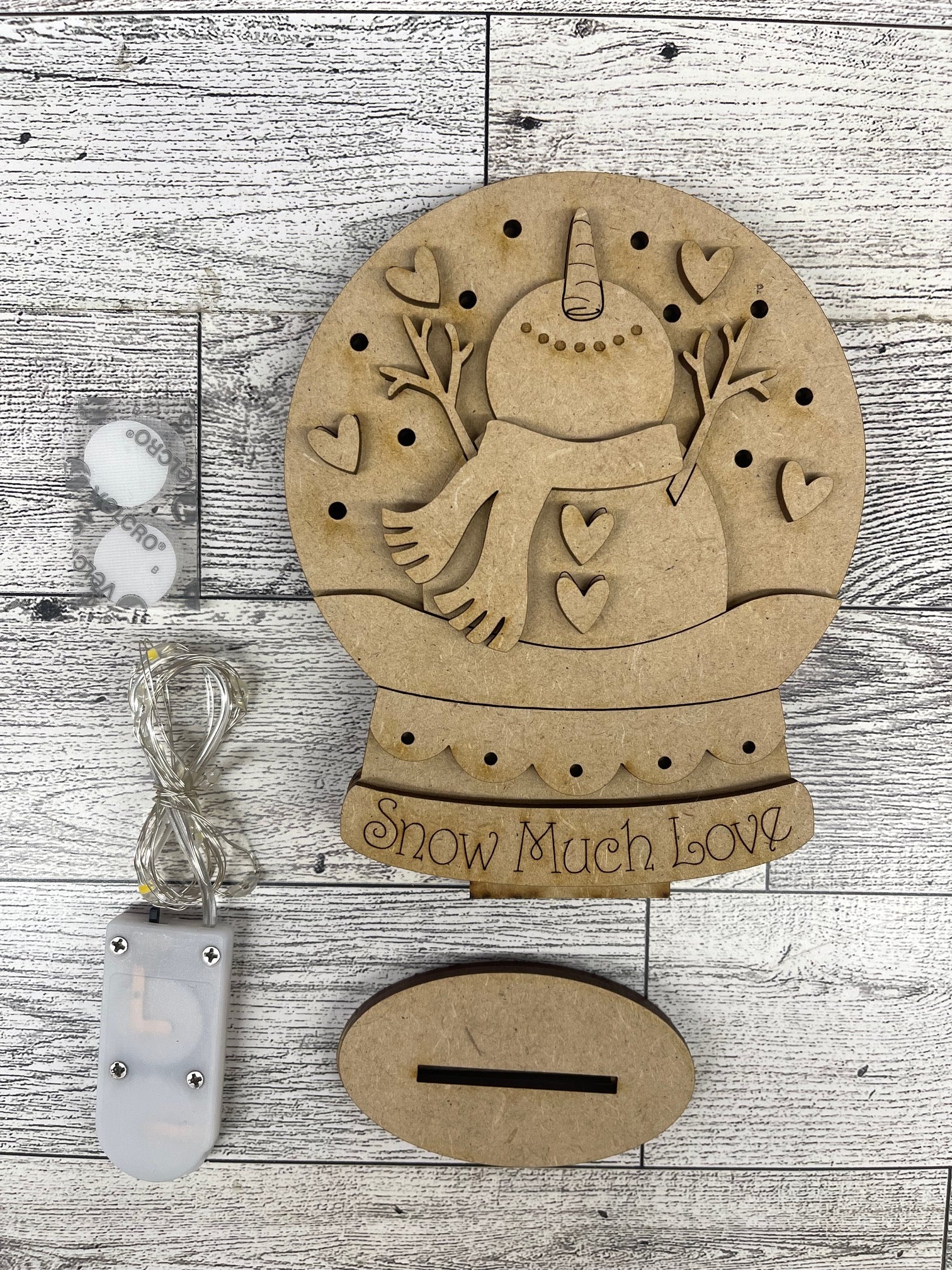 Valentine's Snowman Globe Stander with Lights - unpainted cutouts, ready for you to paint