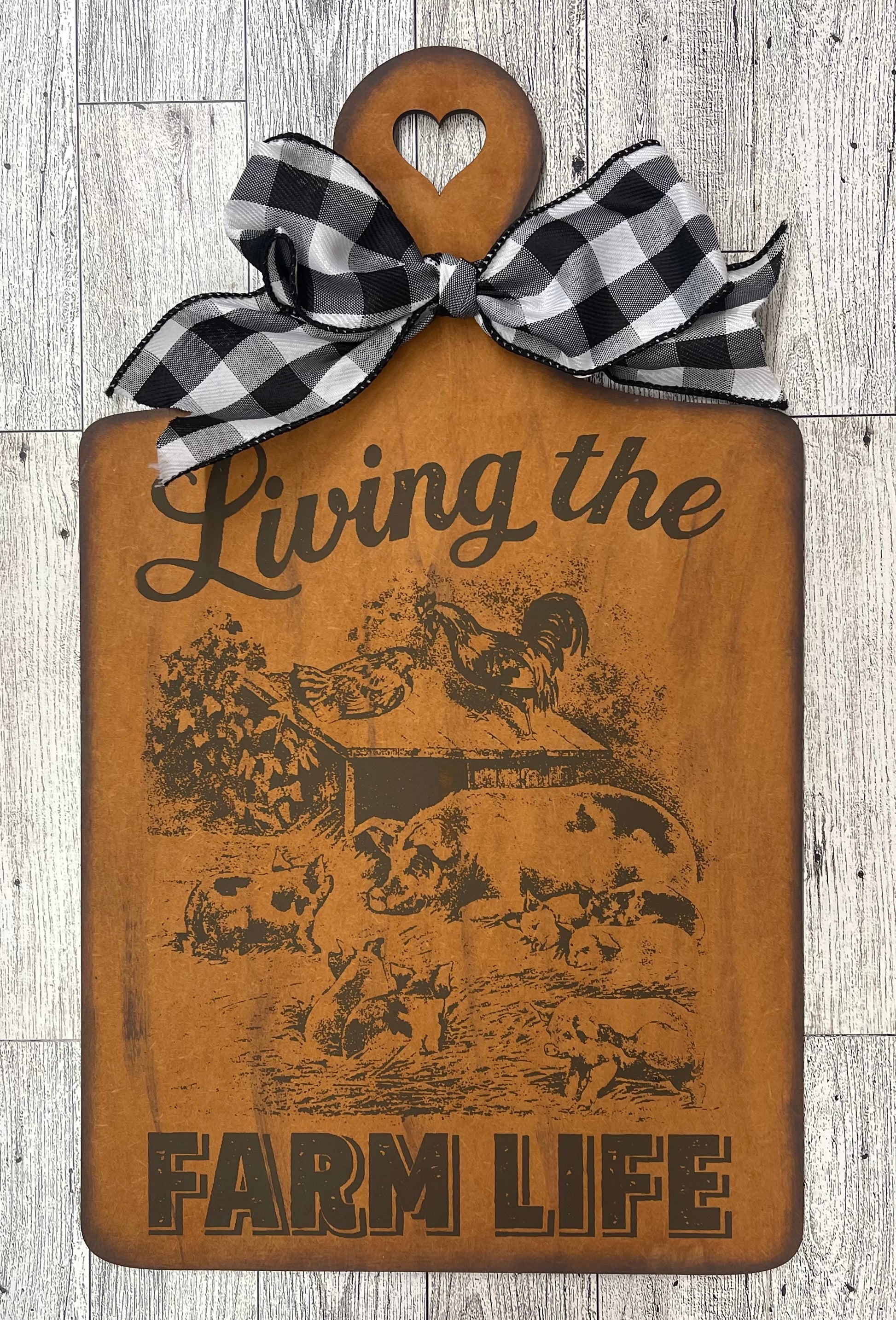 Living the Farm Life Cutting Board - unpainted wooden cutouts, ready for you to paint