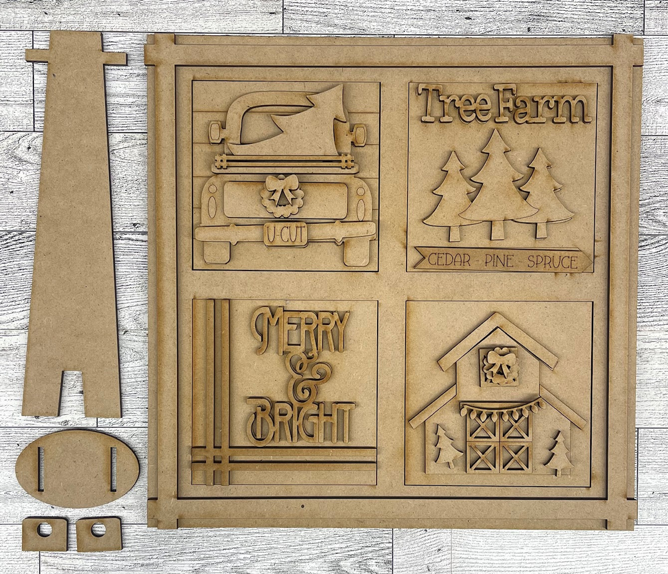 Merry & Bright Tree Farm Leaning ladder inserts and sign cutouts - unpainted wooden cutouts, ready for you to paint