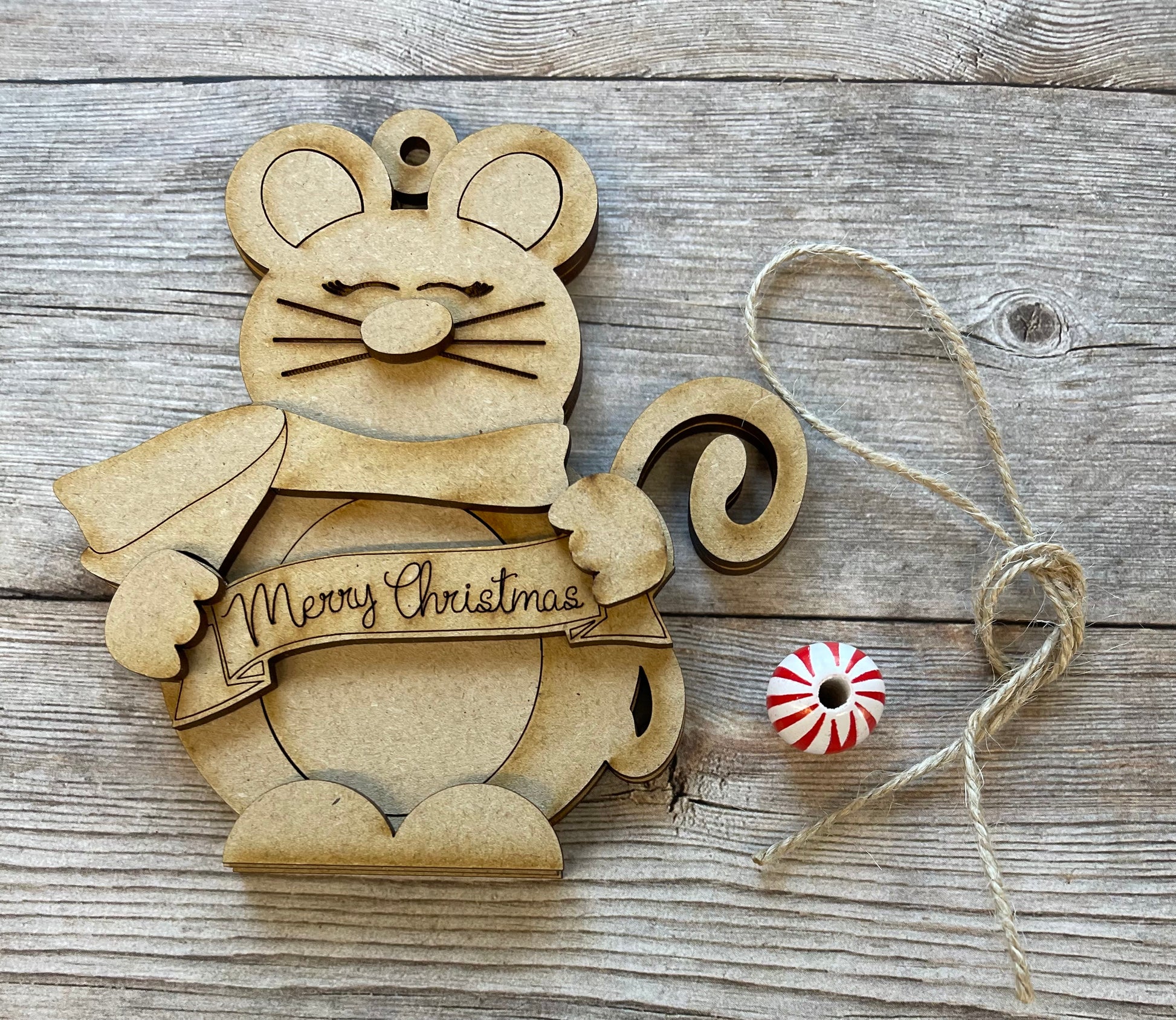 Mouse Ornament - Qty 1 wood ornament cutout, unpainted ready for you to finish